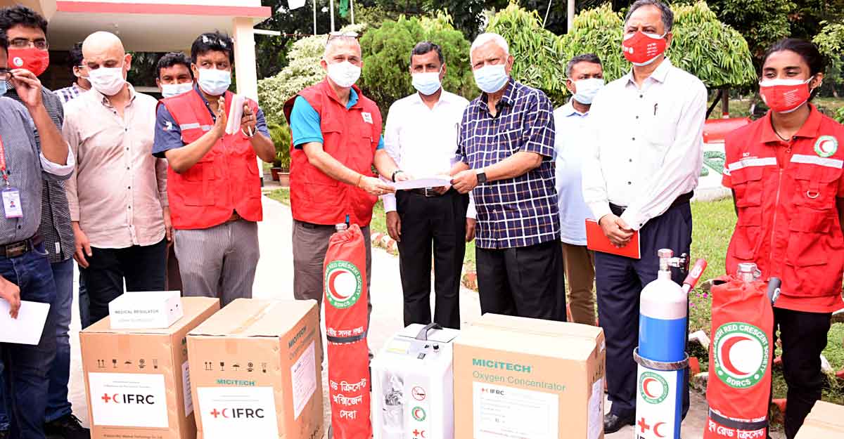 করোনাভাইরাস মোকাবিলায় বাংলাদেশ রেড ক্রিসেন্ট সোসাইটিকে দেশের ৬৪ জেলা, ৪টি সিটি ইউনিট, ৫৬টি এমসিএইচ ও ৫টি জেনারেল হাসপাতালের জন্য ৬৪০টি অক্সিজেন সিলিন্ডার ও ২৪০টি বিশেষ অক্সিজেন কনসেন্ট্রেটর হস্তান্তর করেছে ইন্টারন্যাশনাল ফেডারেশন অব রেড ক্রস অ্যান্ড রেড ক্রিসেন্ট সোসাইটিস (আইএফআরসি)।