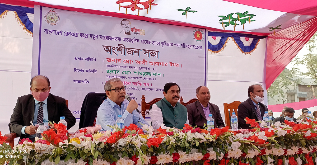 বাংলাদেশ রেলওয়ে পাকশী বিভাগ আয়োজিত ওই অংশীজন সভায় প্রধান অতিথি ছিলেন চুয়াডাঙ্গা-২ আসনের সংসদ সদস্য আলী আজগার টগর। তিনি বলেন, চুয়াডাঙ্গার জীবননগর অঞ্চলে অনেক শাক-সবজি ও ফলমূল উৎপাদন হয়। কৃষকরা খুব অল্প খরচে কম সময়ে তাদের উৎপাদিত পণ্য ঢাকাসহ দেশের বিভিন্ন স্থানে পরিবহন করতে পারবেন।