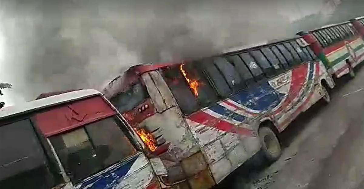 ভিক্টর ক্লাসিক পরিবহনের বাসে আগুন / ছবি: রায়হান রহমান