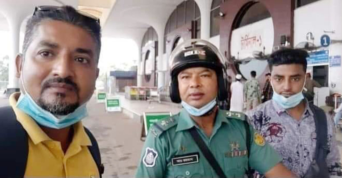 বিদেশগামীকে বিমানবন্দরে পৌঁছে দিলেন এসআই আব্দুর রহমান