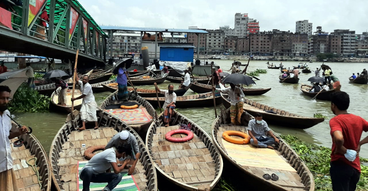 সরেজমিনে দেখা যায়, সর্বাত্মক লকডাউনের কারণে বুড়িগঙ্গা নদীর শ্যামবাজার ঘাট, ওয়াইজ ঘাট, তেল ঘাট, লালকুঠি ঘাট, ফরাশগঞ্জ ঘাট, বাদামতলী ঘাটসহ বিভিন্ন ঘাটে নেই যাত্রী ও মাঝিদের হৈচৈ। যাত্রীদের অপেক্ষায় ঘাটে বসে অলস সময় কাটাচ্ছেন নৌকার মাঝিরা। জরুরি প্রয়োজনে ঘর থেকে বের হয়েছেন যারা, স্বাস্থ্যবিধি মেনে তাদের পার করতে দেখা যায় মাঝিদের। তবে পর্যাপ্ত যাত্রী না পাওয়ায় কষ্টে দিন কাটাতে হচ্ছে তাদের।