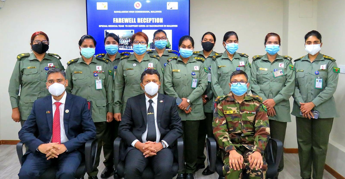 মালদ্বীপের বাংলাদেশ দূতাবাস জানায়, মালদ্বীপ সরকারের অনুরোধে করোনা প্রতিরোধে ভ্যাকসিন প্রদানের জন্য বাংলাদেশ সরকার সশস্ত্র বাহিনীর একটি মেডিকেল টিম মালদ্বীপে পাঠায়। টিমটি গত ৪ মাসে প্রায় ৩৮ হাজার ব্যক্তিকে ভ্যাকসিন প্রদান করে। মেডিকেল টিম কার্যক্রম সফলভাবে সমাপ্ত করে সোমবার (৫ জুলাই) বাংলাদেশের উদ্দেশ্যে যাত্রা করে।