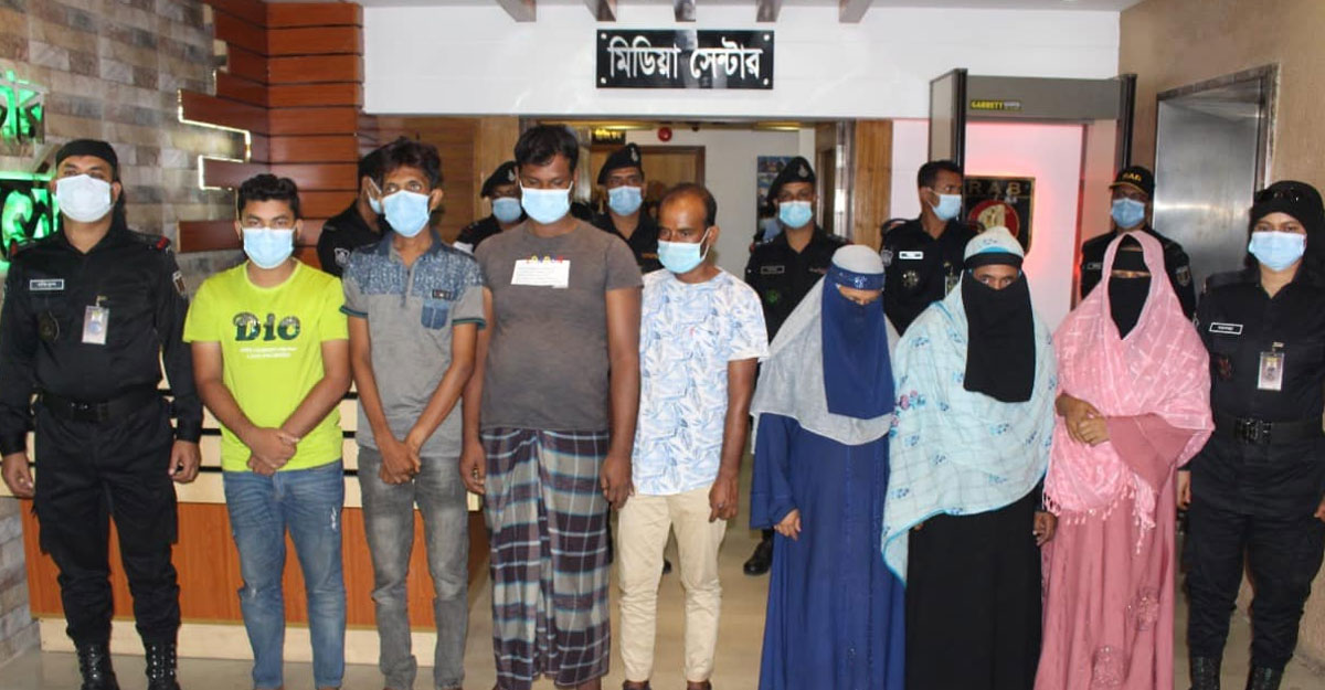 গ্রেফতাররা হলেন, মো. আশিক (২৫), আজিজুল হক (৩৫), মিজানুর রহমান মিজান (৪৩), নাজমুল হুদা (৩১), সিমা আক্তার (২৩), হেলেনা বেগম (৪২) ও পলি আক্তার। এ সময় তাদের কাছ থেকে উদ্ধার করা হয় ১৭টি পাসপোর্ট, ১৪টি বিভিন্ন ব্যাংকের চেক বই, দুটি এটিএম কার্ড, ১৫টি বিভিন্ন ব্যাংকে টাকা জমাদানের বই, দুটি হিসাব নথি, দুটি এনআইডি, ১০টি মোবাইল ফোন ও নগদ ৫৬ হাজার টাকা উদ্ধার করা হয়।