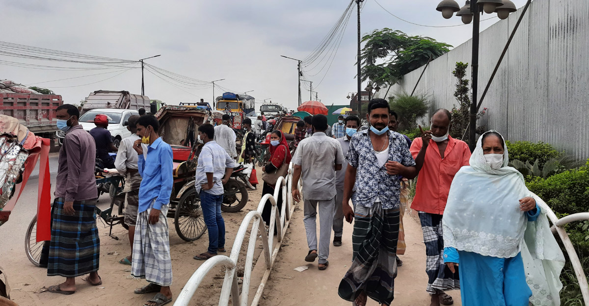 সরকার ঘোষিত বিধিনিষেধে সড়ক একেবারেই ফাঁকা থাকার কথা। কিন্তু সোমবার (১২ জুলাই) আমিন বাজার ব্রিজ পার হয়ে দেখা গেছে ভিন্ন চিত্র। হাজার হাজার মানুষ গাড়ির জন্য অপেক্ষা করছেন। সেখানে সহজেই মিলছে প্রাইভেটকার, মাইক্রোবাস ও মোটরসাইকেল।