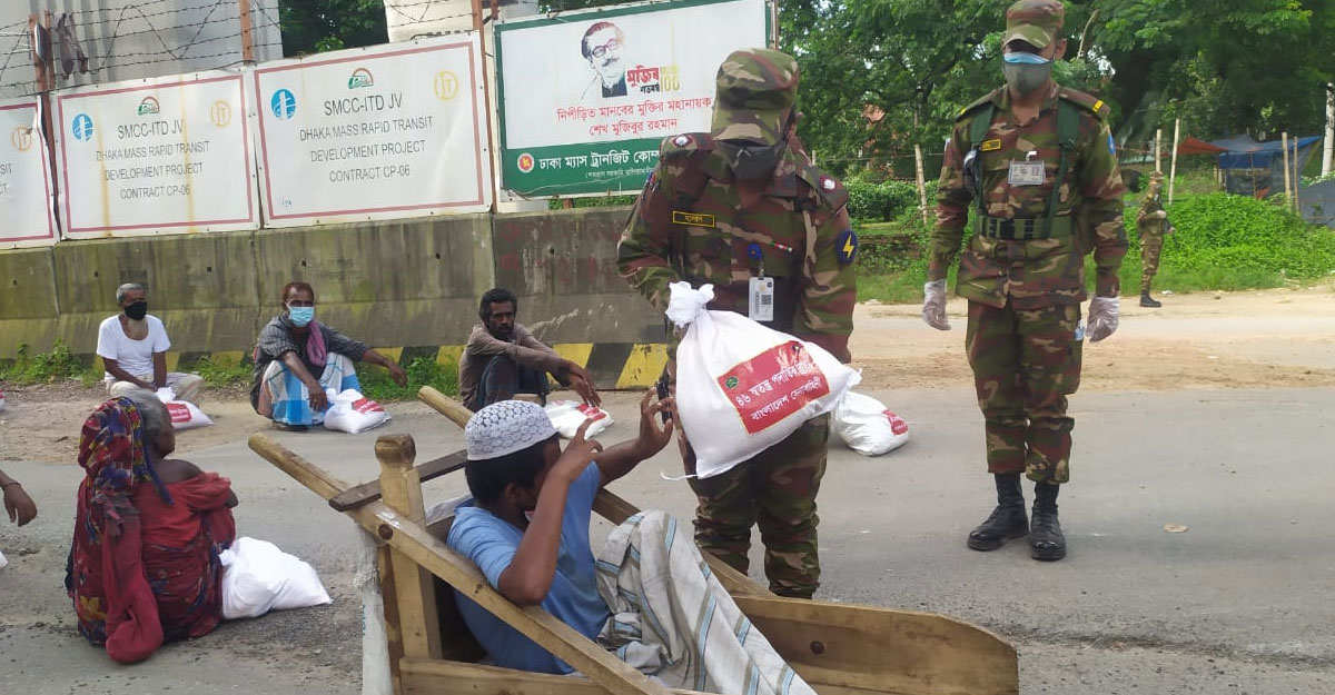 ৪৬ স্বতন্ত্র পদাতিক বিগ্রেড বাংলাদেশ সেনাবাহিনী ইস্ট বেঙ্গলের মেজর হাসান চৌধুরী বলেন, আমাদের প্রধানের নির্দেশে সারাদেশে এ কার্যক্রম হাতে নিয়েছে সেনাবাহিনী। এরই অংশ হিসেবে আমরা দোয়েল চত্বর এলাকায় পাঁচ শতাধিক অসহায় মানুষের মৌলিক প্রয়োজনীয় খাবার (চাল, ডাল, তেল, পেঁয়াজ) দিচ্ছি। চলমান লকডাউনে যাদের কোনো কাজকর্ম নেই, যারা কোনো ধরনের সহযোগিতা পাচ্ছে না তাদের আমরা অগ্রাধিকার দিচ্ছি।