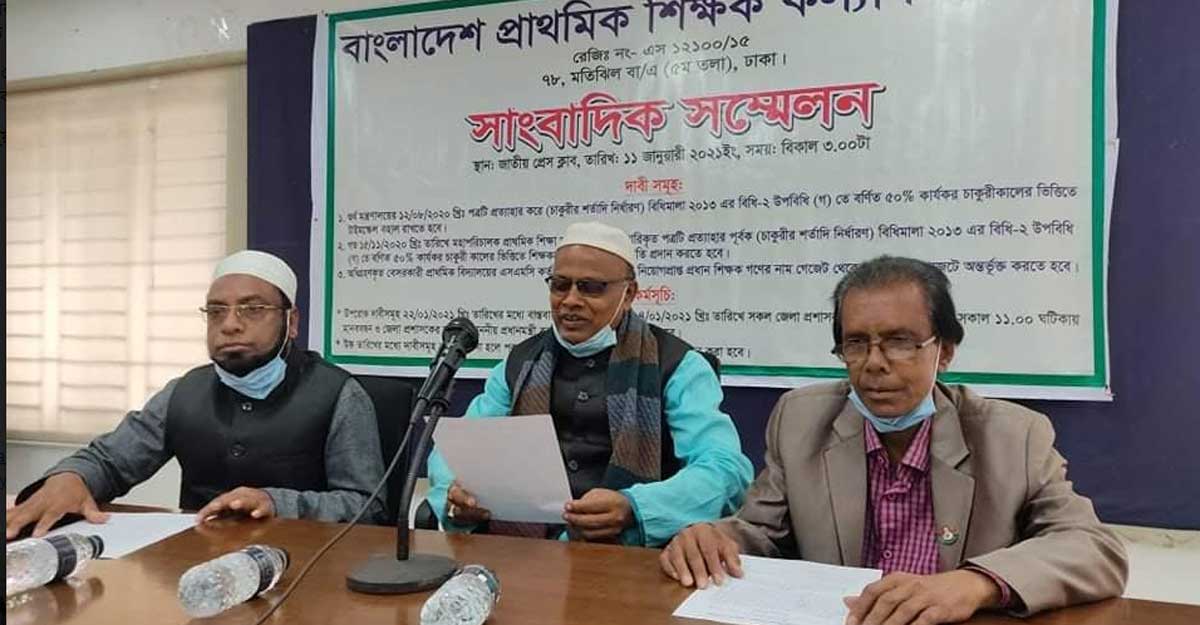 সংবাদ সম্মেলন সমিতির মহাসচিব মো. মুনছুর আলী বলেন, ‘শিক্ষাই জাতির মেরুদণ্ড’ এবং তার মূল ভিত্তি হচ্ছে প্রাথমিক শিক্ষা। এই বাস্তবতা অনুধাবন করে জাতির জনক বঙ্গবন্ধু শেখ মুজিবুর রহমান যুদ্ধ বিধ্বস্ত দেশে দুর্বল অর্থনৈতিক অবস্থার মধ্যে ১৯৭৩ সালে প্রায় ৩৭ হাজার বেসরকারি প্রাথমিক বিদ্যালয় ও কর্মরত শিক্ষকদের চাকরি জাতীয়করণ করেছিলেন। তারই ধারাবাহিকতায় প্রধানমন্ত্রী শেখ হাসিনা প্রাথমিক শিক্ষার মান উন্নয়নে অবহেলিত শিক্ষকদের সামাজিক মর্যাদা বাড়ানোর জন্য ২০১৩ সালের ৯ জানুয়ারি শিক্ষক মহসমাবেশে ঘোষণার মাধ্যমে ২৬ হাজার ১৯৩টি বেসরকারি প্রাথমিক বিদ্যালয় ও কর্মরত ১ লাখ ৪ হাজার ৭৭২ জন শিক্ষকের চাকরি জাতীয়করণ করে শিক্ষক ও তাদের পরিবারের মধ্যে চিরস্মরণীয় হয়ে আছেন। প্রাথমিক ও গণশিক্ষা মন্ত্রণালয়ের তৎকালীন কর্তৃপক্ষ অধিগ্রহণ করা প্রাথমিক শিক্ষকদের (চাকার শর্তাদি নির্ধারণ) বিধিমালা এস.আর.ও নং ৩১৫ আইন ২০১৩ প্রনয়ন করে গেজেট প্রকাশ করেন। সেই অনুযায়ী ২০১৪ সালের জুন মাস থেকে শিক্ষকদের বেতন-ভাতা, টাইম স্কেলসহ অন্যান্য আর্থিক সুবিধাদি আজ পর্যন্ত দিয়ে আসছেন।