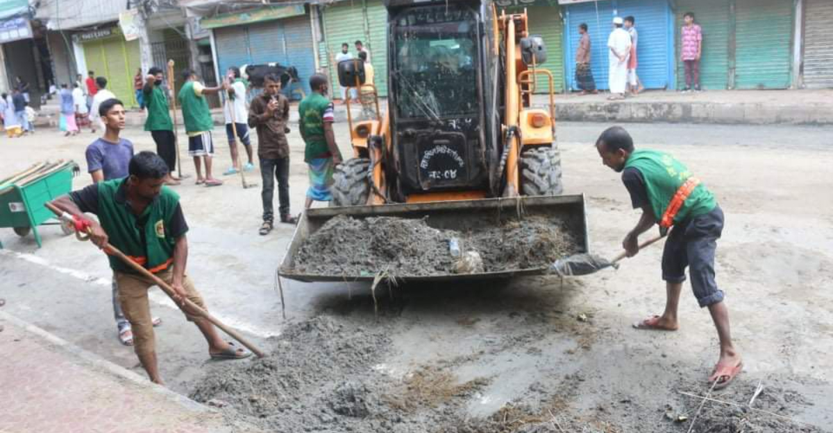 বর্জ্য অপসারণের কাজ চলছে/ ছবি : সুমন শেখ