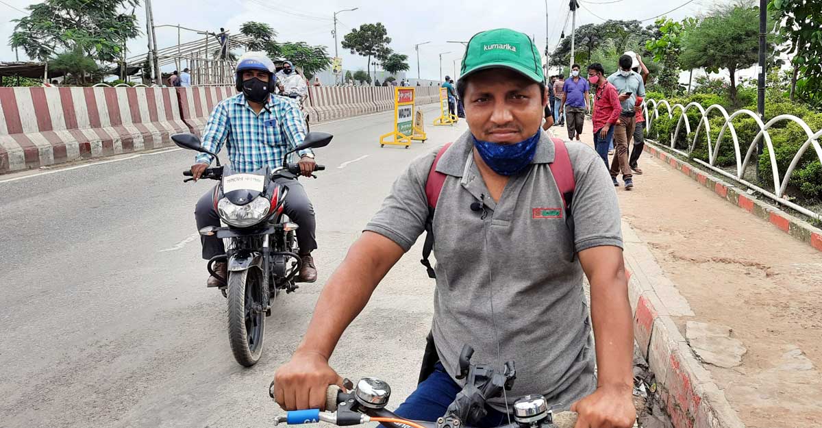 রবিন বলেন, আমার বাড়ি চাঁদপুর। যশোরের কেশবপুরে গিয়েছিলাম অসুস্থ শাশুড়িকে দেখতে। ঈদের আগে বাসে করে গিয়েছি। কিন্তু ফেরার আগেই লকডাউন শুরু হয়ে গেল। তাই বিপাকে পড়েছি। কিন্তু জীবিকার তাগিদে না ফিরে উপায় নেই। তাই সাইকেল নিয়েই রওনা হয়েছি।
