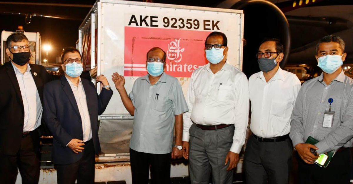 ফ্লাইট টি শাহজালাল বিমানবন্দরে পৌঁছালে পররাষ্ট্র সচিব মাসুদ বিন মোমেন, স্বাস্থ্য সচিব লোকমান হোসেন মিয়া ও প্রধানমন্ত্রীর ব্যক্তিগত চিকিৎসক ডা. এ বি এম আব্দুল্লাহ এসব ভেন্টিলেটর গ্রহণ করেন।