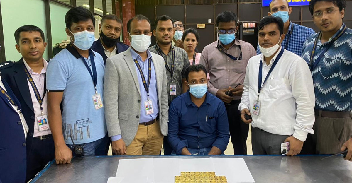 ঢাকা কাস্টমস হাউজের উপ-কমিশনার আব্দুস সাদেক জানান, গোপন সংবাদের ভিত্তিতে চোরাচালান প্রতিরোধে কাস্টম হাউস ঢাকার প্রিভেনটিভ টিমে কর্তব্যরত কর্মকর্তারা বিমানবন্দরের বিভিন্ন পয়েন্টে অবস্থান করে নজরদারি করতে থাকেন। এক পর্যায়ে যাত্রী মাহিন উদ্দিনকে বোর্ডিং ব্রিজ থেকে গ্রিন চ্যানেলে নিয়ে আসা হয়। পরবর্তীতে গ্রিন চ্যানেলে বিভিন্ন সংস্থার উপস্থিতিতে তার সঙ্গে থাকা কালো রঙের একটি হ্যান্ড ব্যাগ থেকে ৩৭ পিস স্বর্ণবার উদ্ধার করা হয়।