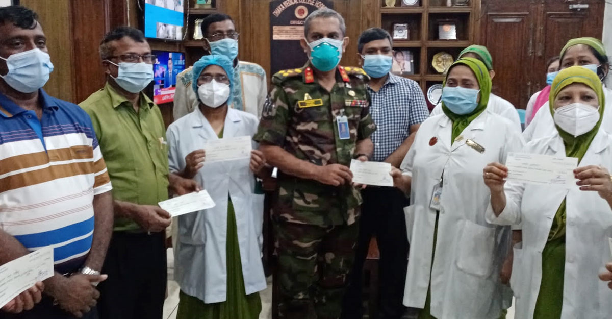 ঢামেকে নার্সদের প্রণোদনার চেক হস্তান্তর শুরু
