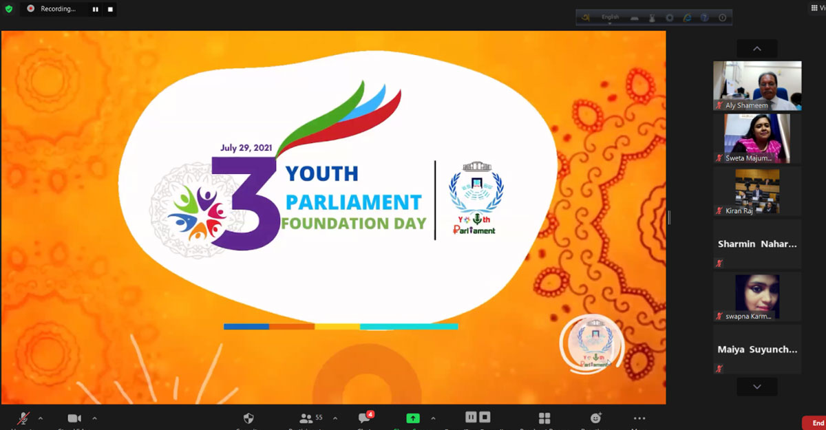 ইয়ুথ পার্লামেন্টের তৃতীয় প্রতিষ্ঠাবার্ষিকী ও প্রিন্সেস ডায়ানা পুরস্কারপ্রাপ্তিতে বৃহস্পতিবার (২৯ জুলাই) এক মনোজ্ঞ অনুষ্ঠান ভার্চুয়ালি আন্তর্জাতিকভাবে পালিত হয়েছে। বাংলাদেশ সময় সন্ধ্যা সাড়ে ৭টা থেকে শুরু হওয়া অনুষ্ঠানটি চলে রাত ১০টা পর্যন্ত।