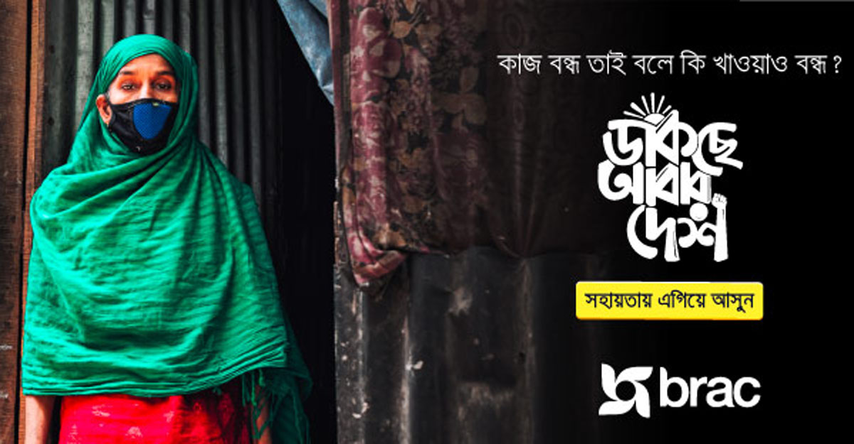 মহামারি করোনা মোকাবিলায় দেশের মানুষের সহযোগিতায় হাত বাড়িয়েছে বেসরকারি উন্নয়ন সংস্থা ব্র্যাক। করোনাভাইরাসের বিস্তার রোধে সরকার ঘোষিত বিধিনিষেধে কর্মহীন হয়ে পড়া দরিদ্র মানুষের পাশে দাঁড়াতে উদ্যোগ নিয়েছে উন্নয়ন সংস্থাটি। ব্র্যাকের নতুন এ উদ্যোগের নাম ‘ডাকছে আবার দেশ’।