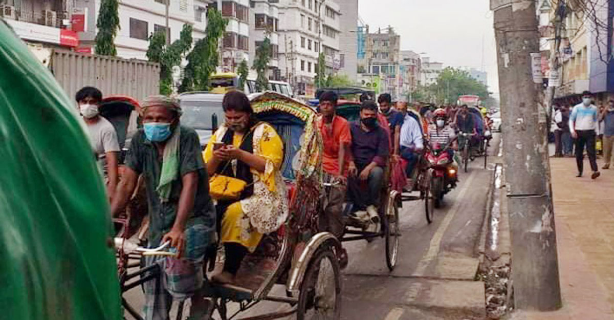 রাজধানীর বনশ্রী এলাকার বাসিন্দা আহমেদ মিলন। মতিঝিলের বেসরকারি একটি প্রতিষ্ঠানে কাজ করেন। বিধিনিষেধেও প্রায় নিয়মিত অফিস করতে হয়। গণপরিবহন বন্ধ থাকায় রিকশায় করেই অফিস যেতে হয় তাকে। কঠোর বিধিনিষেধে অফিসে যেতে তার একমাত্র ভরসা রিকশা। যদিও ভাড়া গুনতে হচ্ছে প্রায় দ্বিগুণ।