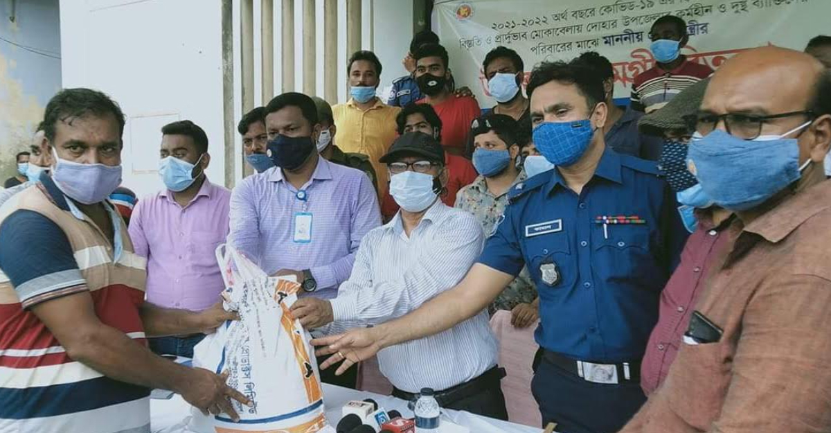 মঙ্গলবার (৩ আগস্ট) দুপুরে স্থানীয় সরকারি পাইলট উচ্চ বিদ্যালয়ের মাঠে সামাজিক দূরত্ব বজায় রেখে উপজেলা চেয়ারম্যান মো. আলমগীর হোসেন প্রধানমন্ত্রীর পক্ষে খাদ্যসামগ্রী বিতরণ করেন। খাদ্যসামগ্রীর মধ্যে ছিল- চাল, ডাল, চিনি, তৈল, পেঁয়াজ ও লবণ।