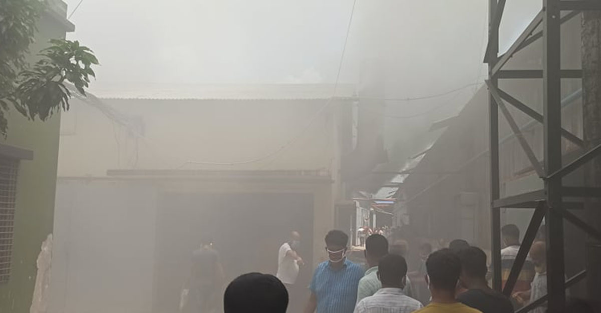 প্রচণ্ড ধোঁয়ায় আগুন নেভাতে বেগ পোহাচ্ছে ফায়ার সার্ভিস