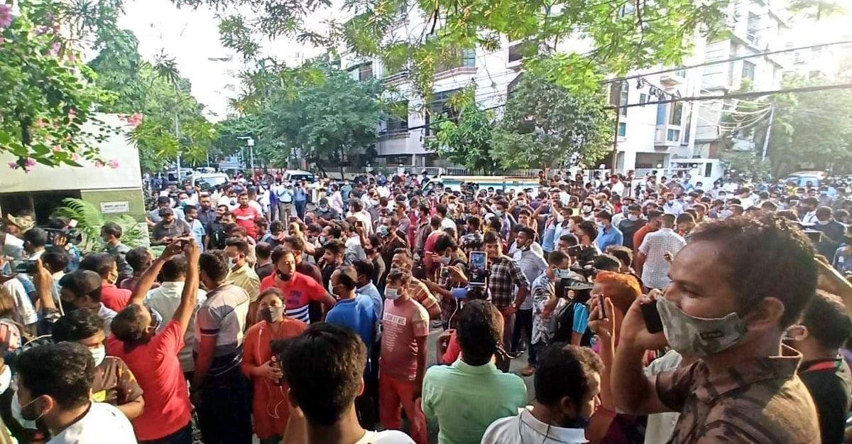 কিন্তু উপস্থিত লোকজন কোনো কথার তোয়াক্কা না করে ঘটনাস্থলে ভিড় করছেন। তারা কোনো ধরনের স্বাস্থ্যবিধি না মেনে পরীমণির বাসায় কীভাবে অভিযান পরিচালনা করা হচ্ছে তা দেখতে ঘটনাস্থলে হাজির হয়েছেন।