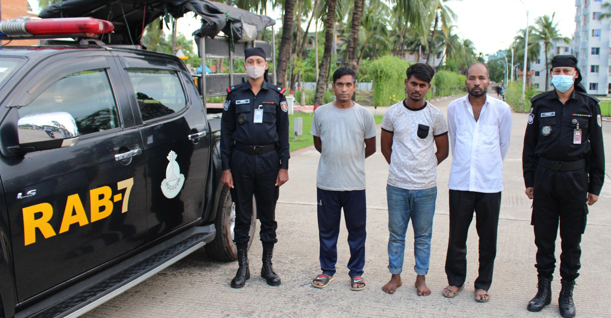 বৃহস্পতিবার (৫ আগস্ট) র্যাব-৭ এর সহকারী পরিচালক (মিডিয়া) মো. নুরুল আবছার এ তথ্য জানিয়েছেন। আটক তিন জন হলেন- আলমগীর (৫২), আলমগীর (৪০) ও ইমতিয়াজ (১৯)।