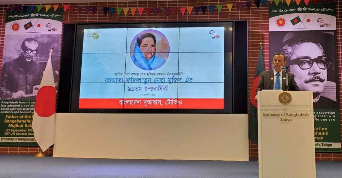 বঙ্গবন্ধু শেখ মুজিবুর রহমানের সহধর্মিণী বঙ্গমাতা ফজিলাতুন নেছা মুজিবের ৯১তম জন্মবার্ষিকী বিনম্র শ্রদ্ধা ও ভালোবাসার সঙ্গে উদযাপন করেছে জাপানের টোকিওর বাংলাদেশ দূতাবাস।