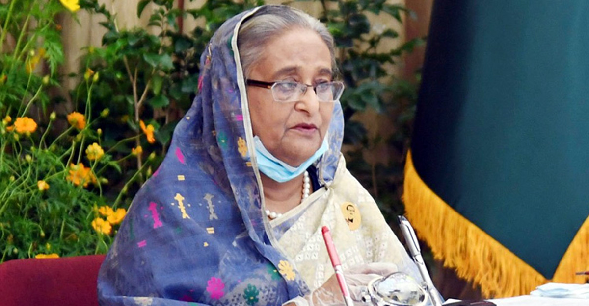 প্রধানমন্ত্রীর সরকারি বাসভবন গণভবন থেকে ভিডিও কনফারেন্সের মাধ্যমে রাজধানীর ওসমানী স্মৃতি মিলনায়তনে যুক্ত হন তিনি।