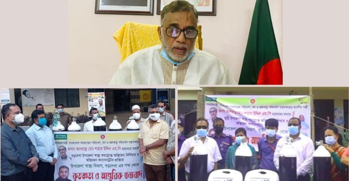 করোনা আক্রান্ত রোগীদের চিকিৎসার জন্য মৌলভীবাজারের বড়লেখা ও জুড়ী উপজেলা স্বাস্থ্য কমপ্লেক্সে ১০টি অক্সিজেন সিলিন্ডার ও সাতটি অক্সিজেন কনসেনট্রেটর দিয়েছেন পরিবেশ, বন ও জলবায়ু পরিবর্তনমন্ত্রী মো. শাহাব উদ্দিন।