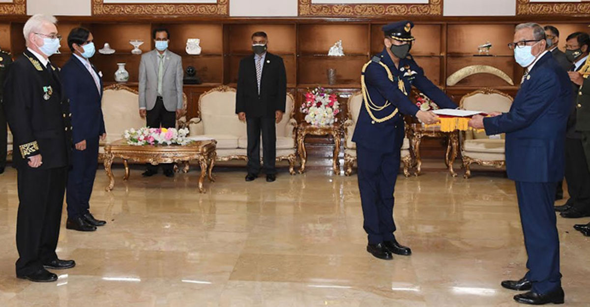 পররাষ্ট্র সচিব মাসুদ বিন মোমেন, রাষ্ট্রপতির কার্যালয়ের সচিব সম্পদ বড়ুয়া, সামরিক সচিব মেজর জেনারেল এস এম সালাহ উদ্দিন ইসলাম, প্রেস সচিব মো. জয়নাল আবেদীন ও সচিব (সংযুক্ত) মো. ওয়াহিদুল ইসলাম খান এ সময় উপস্থিত ছিলেন।
