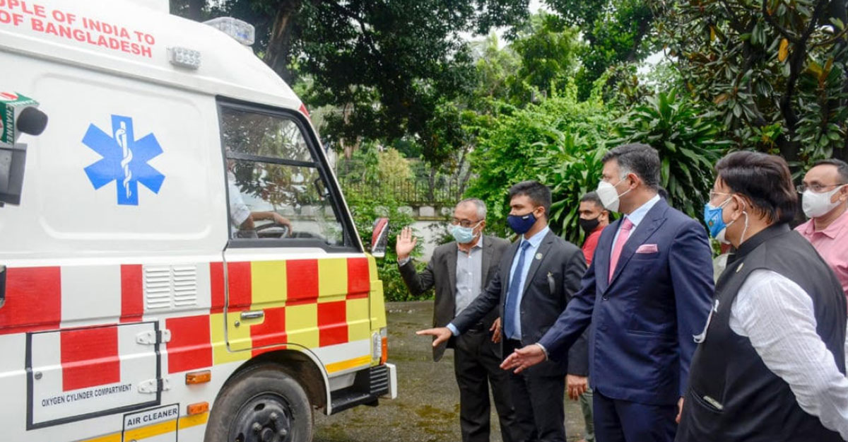 বাংলাদেশকে উপহার হিসেবে ৩১টি লাইফ সাপোর্ট অ্যাম্বুলেন্স দিয়েছে ভারত। একইসঙ্গে ২০ টন জরুরি ওষুধ সামগ্রীও উপহার দিয়েছে ভারত।