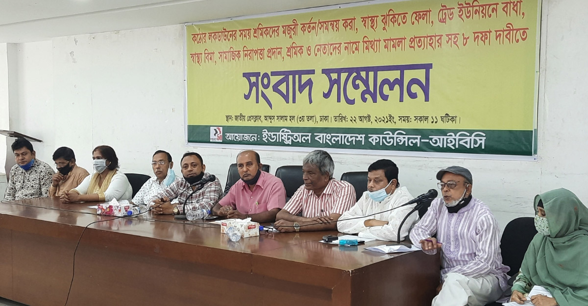 একই সঙ্গে শ্রম অধিদফতর (ডল) এবং কল-কারখানা ও প্রতিষ্ঠান পরিদর্শন অধিদফতর (ডাইফে) থেকে দুর্নীতিবাজ কর্মকর্তাদের অবিলম্বে প্রত্যাহার করা; শ্রমিক নেতা এবং সাধারণ শ্রমিকদের নামে যেসব মিথ্যা মামলা দায়ের হয়েছে, তা অবিলম্বে প্রত্যাহার করা এবং শ্রম আইন সংশোধন করে শ্রম বান্ধব করাসহ আইন সংশোধনী কমিটিতে আইবিসির প্রতিনিধি অন্তর্ভুক্ত করা।