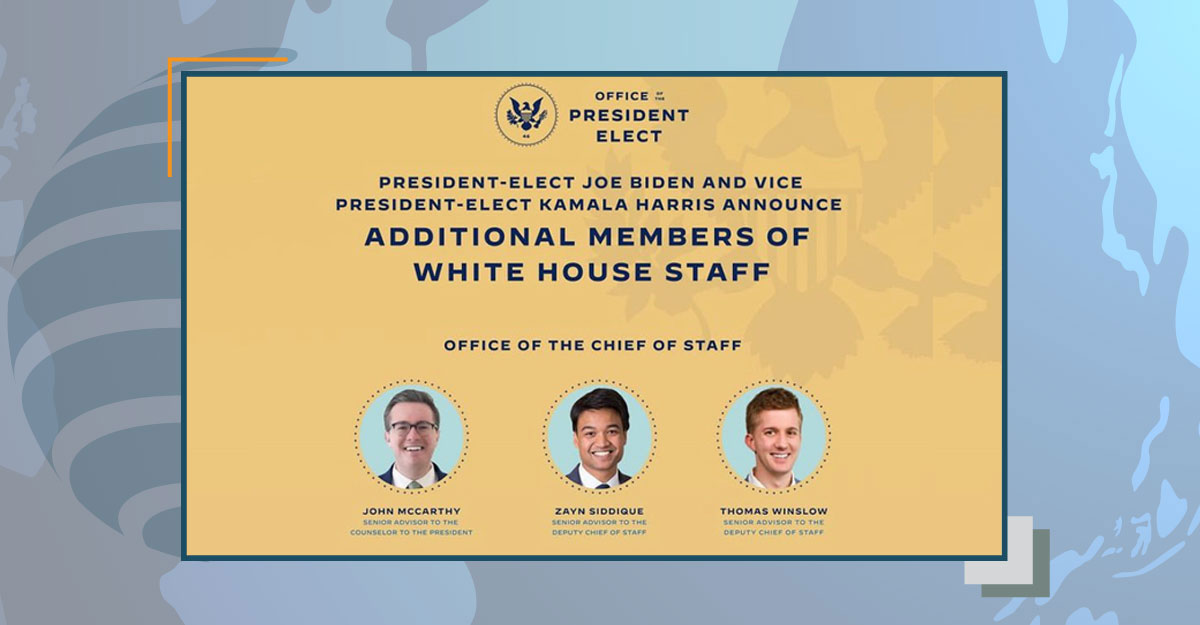 যুক্তরাষ্ট্রের প্রেসিডেন্টের দায়িত্ব নিতে যাওয়া জো বাইডেনের হোয়াইট হাউজ প্রশাসনে প্রথম বাংলাদেশি-আমেরিকান হিসেবে নিয়োগ পাচ্ছেন জেইন সিদ্দিক। হোয়াইট হাউসের ডেপুটি চীফ অব স্টাফের সিনিয়র অ্যাডভাইজার পদে তার নাম ঘোষণা করা হয়েছে।