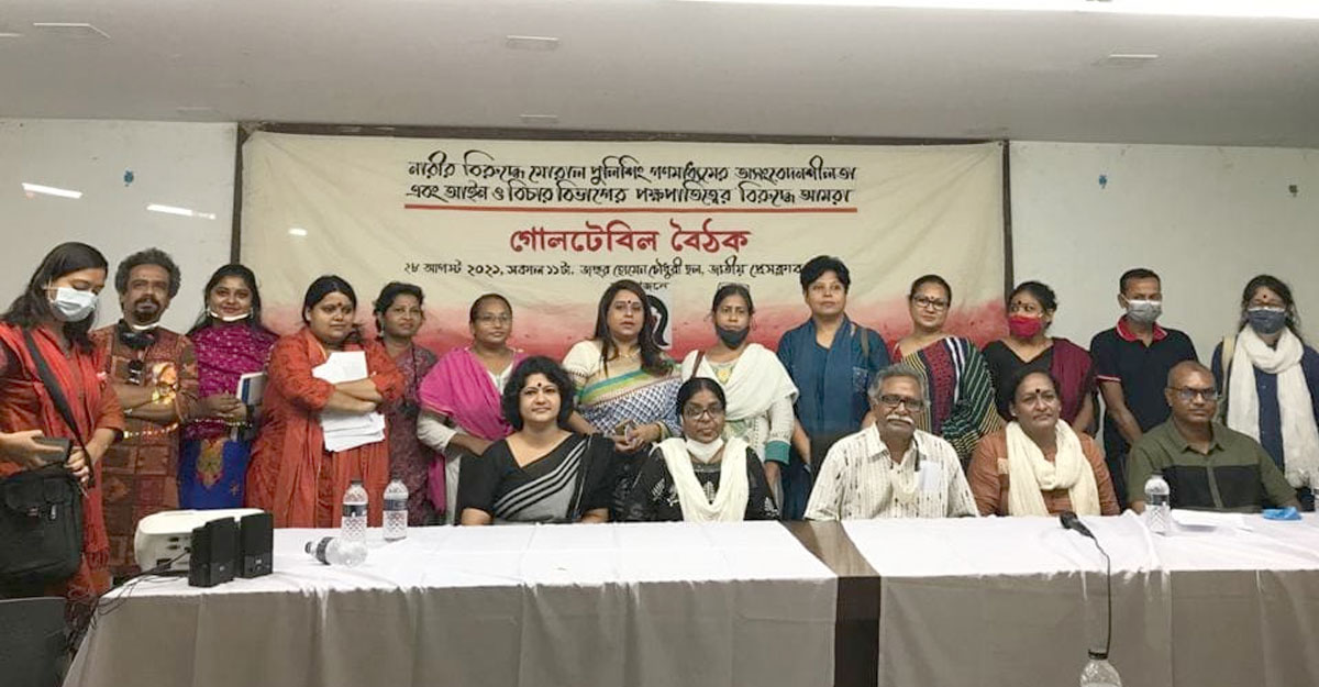 গোলটেবিল বৈঠকে জাহাঙ্গীরনগর বিশ্ববিদ্যালয়ের অধ্যাপক আনু মুহাম্মদ বলেন, এ মুহূর্তে বাংলাদেশ আইন আদালত বলে কিছু নেই। তাই ক্রসফায়ার, গুমের মতো ঘটনা আমরা দেখতে পাই। যেখানে রাষ্ট্রীয় বাহিনী যাকে গুলি করতে চায়, তাকেই মেরে ফেলতে পারে। ক্রসফায়ারের পর এসব রাষ্ট্রীয় বাহিনীর বিবৃতি যে মিথ্যা তা সমাজের সবাই জানে। গণমাধ্যম নারী বিদ্বেষী সংবাদ পরিবেশন করে মূলত জনমত তৈরি করতে। যা ইতোমধ্যে ধর্মীয় এবং রাষ্ট্রীয় নীতিমালা দিয়ে সমাজে প্রচলিত রয়েছে।