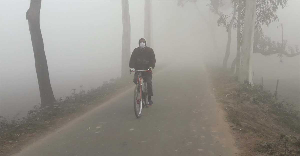 শীতের সকালে সাইকেলে চড়ে গন্তব্যের দিকে