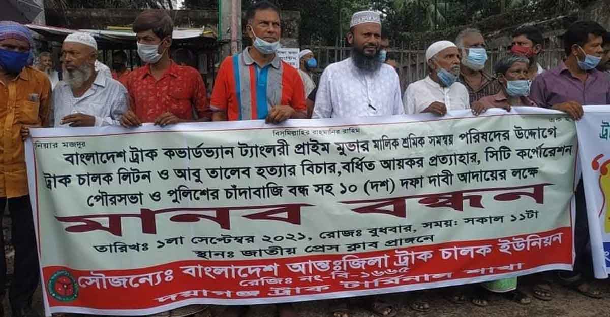 ট্রাক চালক লিটন হত্যার সুষ্ঠু তদন্তের মাধ্যমে দোষীদের আইনের আওতায় এনে দৃষ্টান্তমূলক শাস্তির ব্যবস্থা করাসহ ১০ দফা দাবি জানিয়েছে বাংলাদেশ ট্রাক-কাভার্ডভ্যান, ট্যাংক লরি, প্রাইম মুভার মালিক-শ্রমিক সমন্বয় পরিষদ। আগামী ২৬ সেপ্টেম্বরের মধ্যে এই ১০ দফা দাবি আদায় না হলে ২৭ সেপ্টেম্বর থেকে ৪৮ ঘণ্টার পণ্য পরিবহন কর্মবিরতি পালনের ঘোষণা করেছে সংগঠনটি।