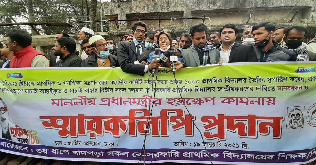 তারা দাবি জানিয়ে বলেন, আমরা চাই নতুন বিদ্যালয় স্থাপনের আগেই সব বেসরকারি প্রাথমিক বিদ্যালয়গুলো জাতীয়করণ করা হোক।