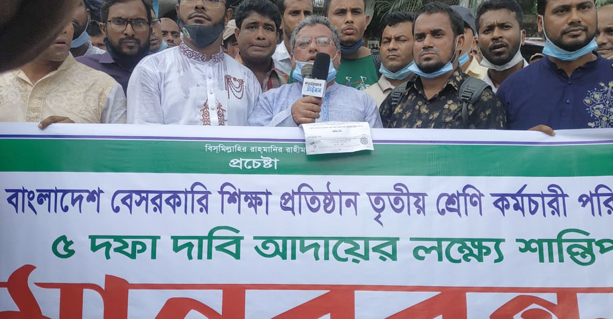 তৃতীয় শ্রেণির কর্মচারীদের ন্যূনতম ১১তম গ্রেডে বেতন-ভাতা প্রদান এবং শিক্ষার্থী সংখ্যার অনুপাতে কর্মচারী বৃদ্ধিসহ ৫ দফা দাবি জানিয়েছে বাংলাদেশ বেসরকারি শিক্ষা প্রতিষ্ঠান তৃতীয় শ্রেণি কর্মচারী পরিষদ।