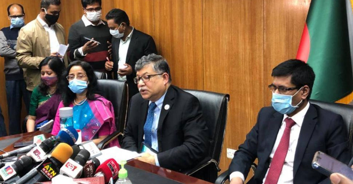 ত্রিপক্ষীয় বৈঠক শেষে সাংবাদিকদের মুখোমুখি পররাষ্ট্র সচিব মাসুদ বিন মোমেন | ছবি- ঢাকা পোস্ট