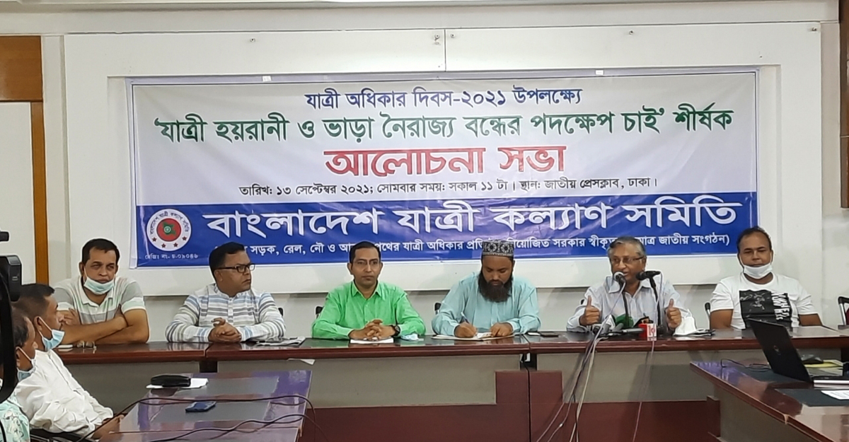 সোমবার (১৩ সেপ্টেম্বর) জাতীয় প্রেস ক্লাবের তফাজ্জল হোসেন মানিক মিয়া হলে বাংলাদেশ যাত্রী কল্যাণ সমিতি আয়োজিত যাত্রী অধিকার দিবস উপলক্ষে ‘যাত্রী হয়রানি ও ভাড়া নৈরাজ্য বন্ধের কার্যকর পদক্ষেপ চাই’ শীর্ষক আলোচনা সভায় বিশিষ্টজনরা এ হস্তক্ষেপ কামনা করেন।