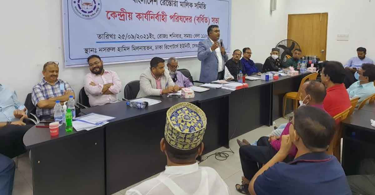 শনিবার (২৫ সেপ্টেম্বর) ঢাকা রিপোর্টার্স ইউনিটির (ডিআরইউ) নসরুল হামিদ মিলনায়তনে বাংলাদেশ রেস্তোরাঁ মালিক সমিতির সাধারণ সভায় (বর্ধিত) নেতারা এ দাবি জানান।