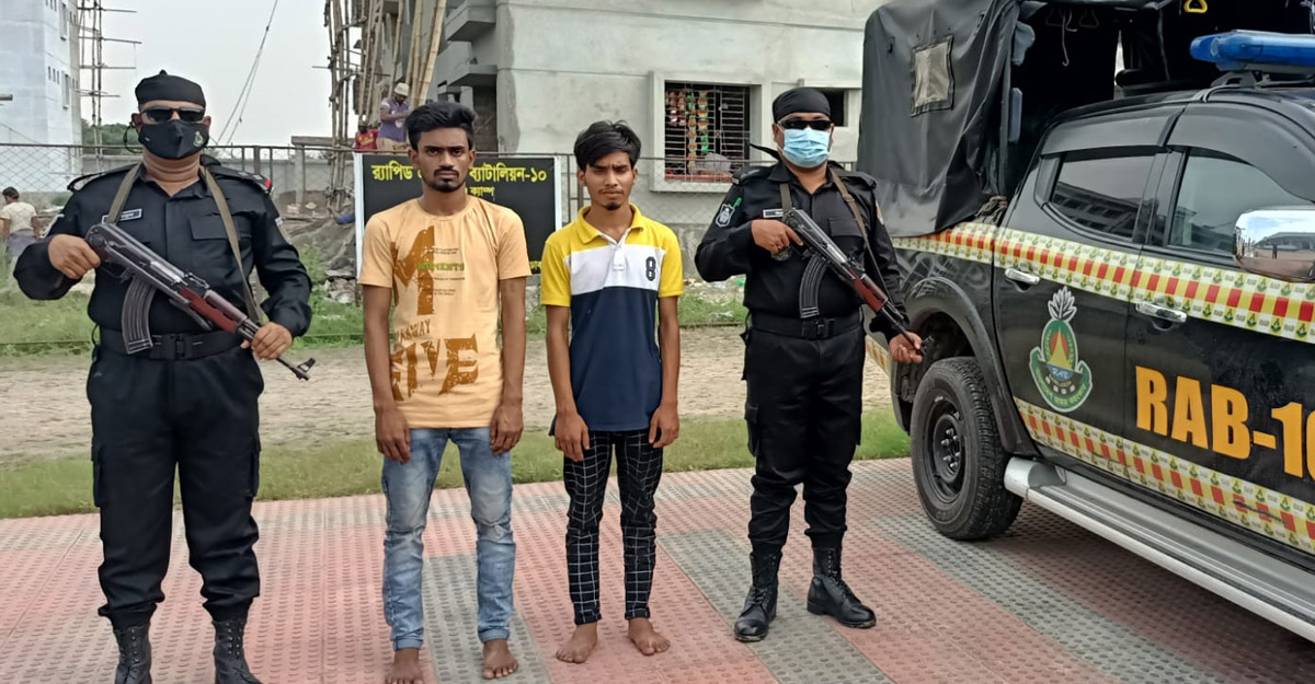 রোববার (২৬ সেপ্টেম্বর) র্যাব- ১০ এর একটি দল দক্ষিণ কেরানীগঞ্জ থানাধীন রাজেন্দ্রপুর বাসস্ট্যান্ড এলাকায় একটি অভিযান পরিচালনা করে তাদের গ্রেফতার করে।