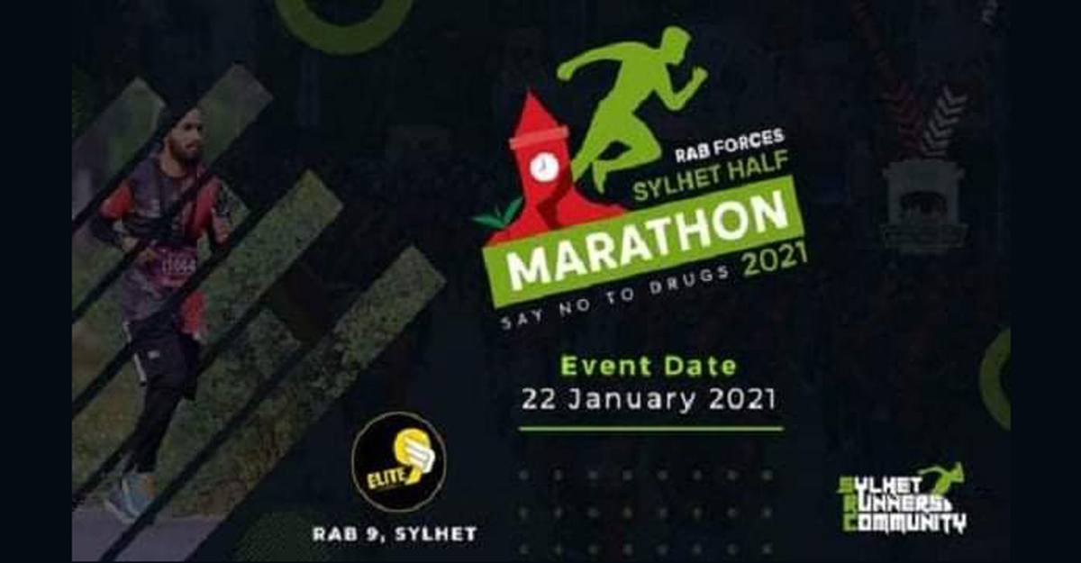 মাদক, জঙ্গি ও সন্ত্রাসবিরোধী চেতনাকে সামনে রেখে হাফ ম্যারাথন দৌড় প্রতিযােগিতার আয়োজন করেছে সিলেটের র্যাব-৯ ও সিলেট রানার্স কমিউনিটি।