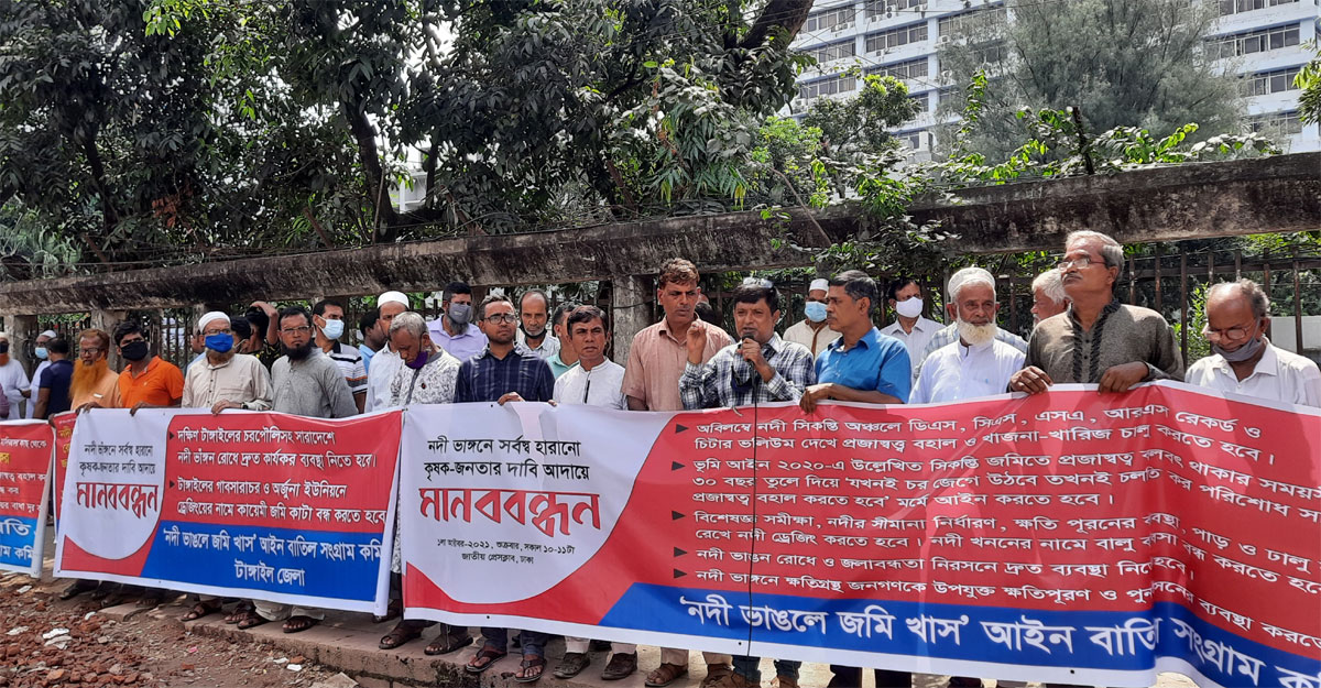 ‘নদী ভাঙলে জমি খাস’ আইন বাতিলের দাবি