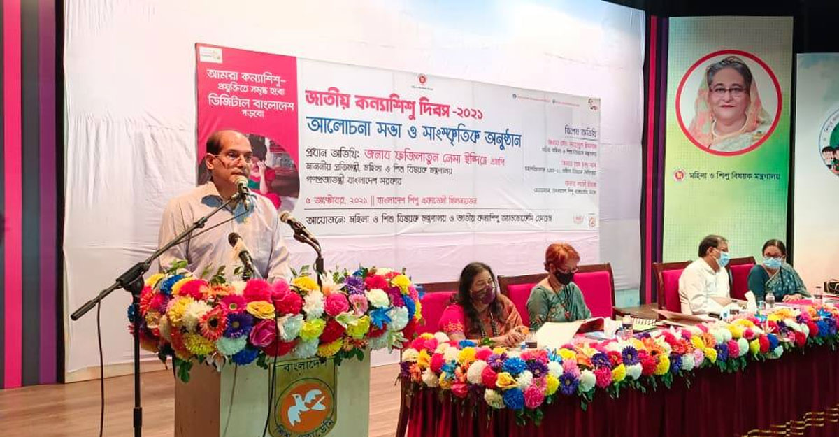 মঙ্গলবার ঢাকায় বাংলাদেশ শিশু একাডেমি মিলনায়তনে জাতীয় কন্যা শিশু দিবস-২০২১ উপলক্ষে এক অনুষ্ঠানে এ কথা বলেন তিনি। মহিলা ও শিশু বিষয়ক মন্ত্রণালয় এবং জাতীয় কন্যা শিশু অ্যাডভোকেসি ফোরাম এ অনুষ্ঠানের আয়োজন করে।