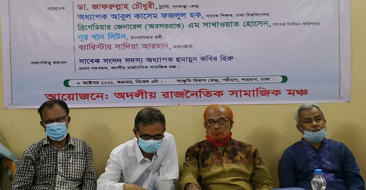 নির্বাচনকালীন সরকার ও নির্বাচন কমিশন গঠন নিয়ে বিদ্যমান সংকট নিরসনে জাতীয় সংসদের উচ্চকক্ষ গঠনের দাবি উঠেছে অদলীয় রাজনৈতিক সামাজিক মঞ্চের আলোচনা সভায়।
