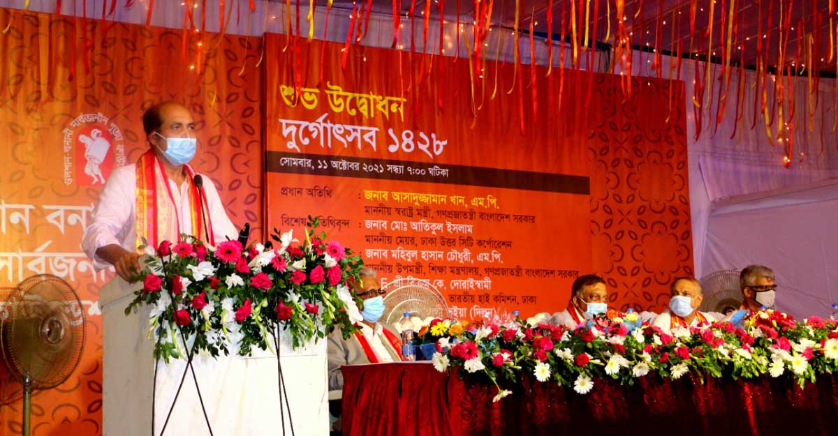 সোমবার (১১ অক্টোবর) রাতে রাজধানীর বনানী মাঠে গুলশান-বনানী সার্বজনীন পূজা ফাউন্ডেশন কর্তৃক আয়োজিত শারদীয় দুর্গাপূজার অনুষ্ঠানে তিনি একথা বলেন।