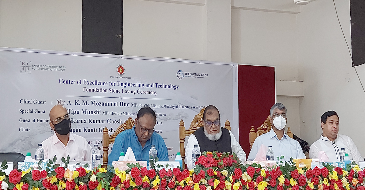 মঙ্গলবার (১২ অক্টোবর) গাজীপুরের কালিয়াকৈরের বঙ্গবন্ধু হাইটেক সিটিতে বাণিজ্য মন্ত্রণালয়ের অধীন ‘এক্সপোর্ট কম্পেটিটিভনেস ফর জবস’ প্রকল্পের আওতায় ‘সেন্টার অব এক্সিলেন্স ফর সায়েন্স অ্যান্ড টেকনোলজি’র ভিত্তিপ্রস্তর স্থাপন অনুষ্ঠানে তিনি এ কথা বলেন।