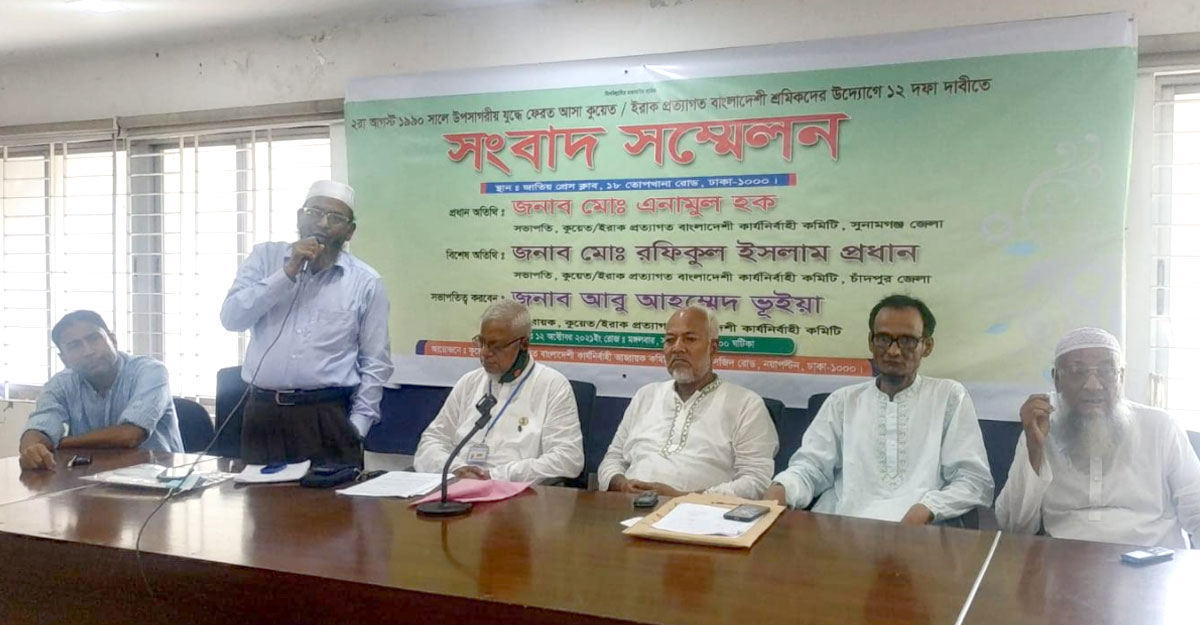 সংবাদ সম্মেলনে কুয়েত-ইরাক প্রত্যাগত বাংলাদেশি কার্যনির্বাহী কমিটির আহ্বায়ক আবু আহমদে ভূইয়া বলেন, আমরা ১৯৯০ সালে প্রয়োজনের তাগিদে এবং দেশের উন্নয়নে নিজেদের ভিটেমাটি বিক্রি ও ধার-দেনা করে কুয়েত-ইরাকে পাড়ি জমিয়েছিলাম। কিন্তু ইরাক-কুয়েত যুদ্ধের সময় খালি হাতে দেশে ফিরতে হয়েছে। প্রত্যাবর্তনের পর থেকে দুঃখ-দুর্দশার মধ্যে আমরা দিন কাটাচ্ছি।