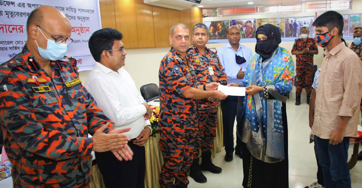 একই অনুষ্ঠানে করোনায় আক্রান্ত হয়ে মৃত্যুবরণকারী ফায়ার সার্ভিস ও সিভিল ডিফেন্স অধিদফতরের তিন সদস্যের প্রত্যেকের পরিবারকে এক লাখ টাকা অনুদানের চেক দেওয়া হয়। এছাড়াও আরমানিটোলার অগ্নিনির্বাপণের সময় আহত ফায়ারফাইটার বিষ্ণুপদ মিস্ত্রির হাতেও অনুদানের চেক তুলে দেওয়া হয়।