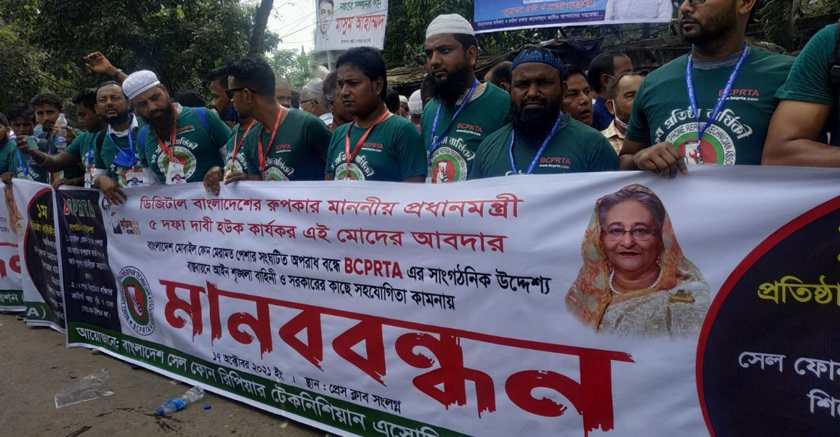 ৫ দফা দাবি নিয়ে রাস্তায় মোবাইল ফোন মেরামতে জড়িতরা