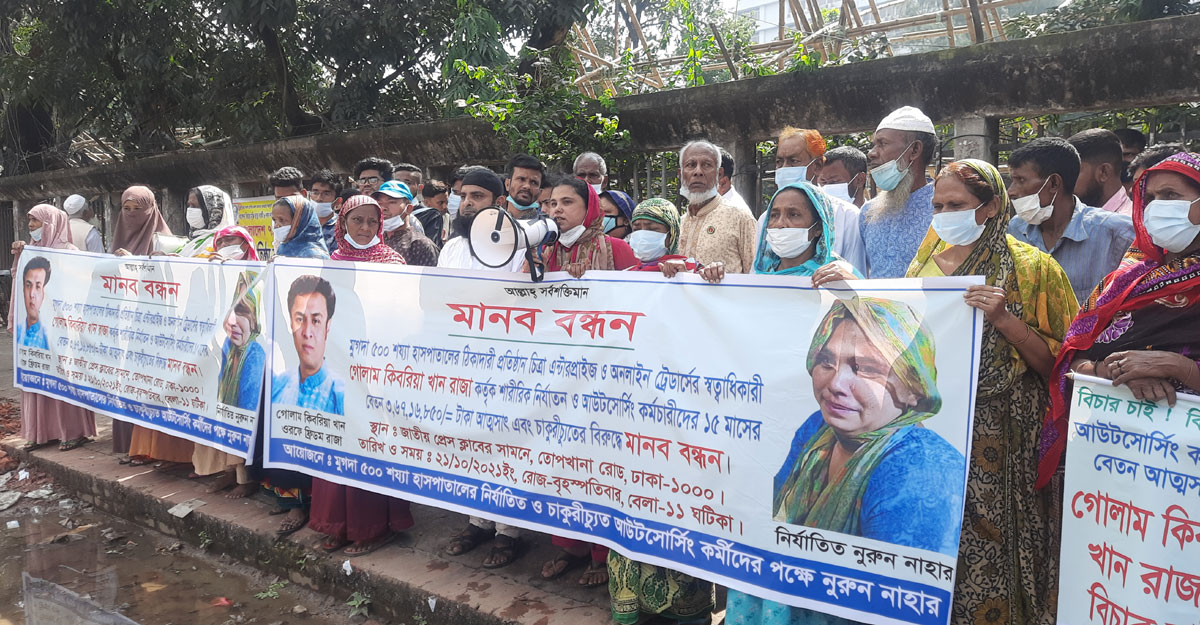 চাকরিচ্যুত আউটসোর্সিং কর্মীদের বকেয়া বেতনের দাবি