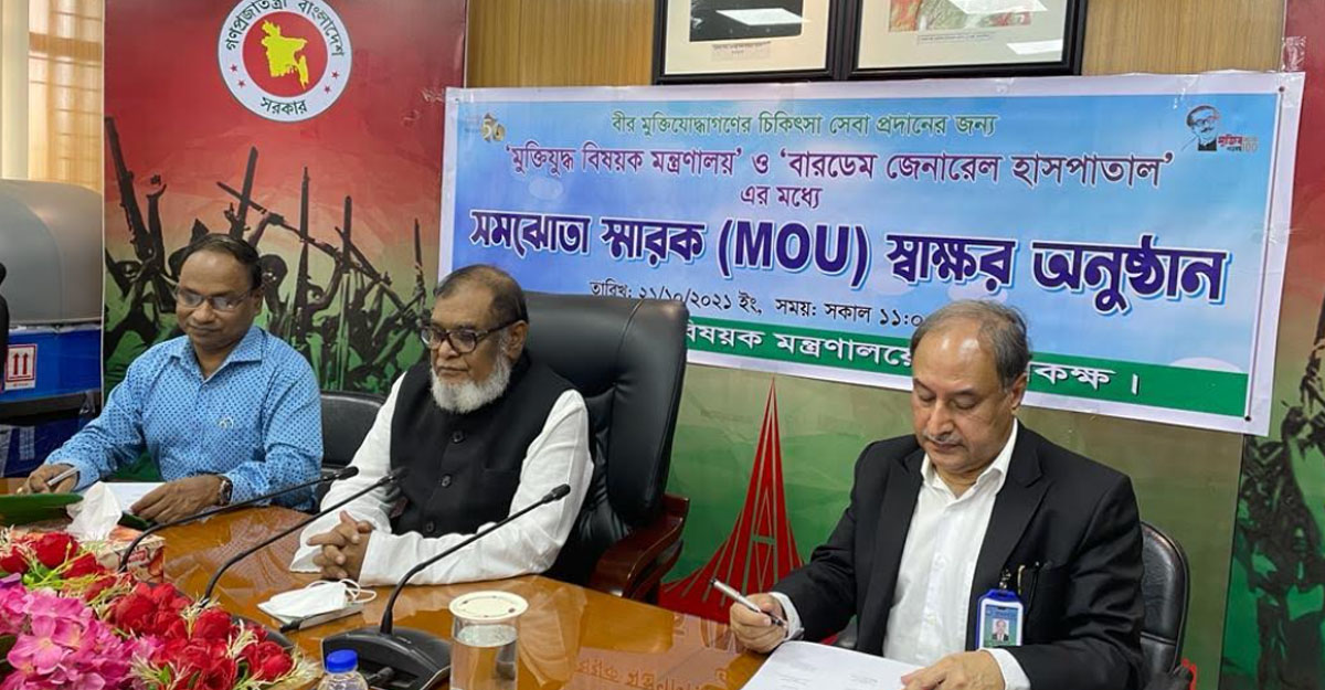 মুক্তিযোদ্ধা বিষয়ক মন্ত্রণালয়ের পক্ষে অতিরিক্ত সচিব রঞ্জিত কুমার দাস ও বারডেম হাসপাতালের পক্ষে প্রতিষ্ঠানের মহাপরিচালক অধ্যাপক এম কে আই কাইয়ুম চৌধুরী সমঝোতা স্মারক স্বাক্ষর করেন।