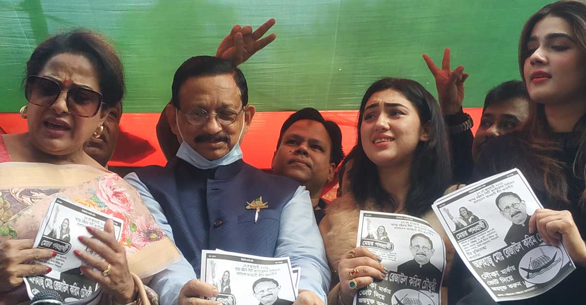 নির্বাচনে আ.লীগের প্রার্থীর প্রচারণায় অরুণা বিশ্বাস, অপু বিশ্বাস ও মাহিয়া মাহি/ ছবি: ঢাকা পোস্ট